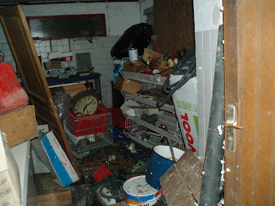 Allí han almacenado todo tipo de trastos, como relojes de pared, maletas, un sillón, una nevera de helados…