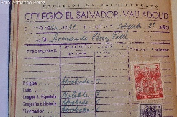 Boletín de calificaciones de Armando Pérez, curso 1960/61.